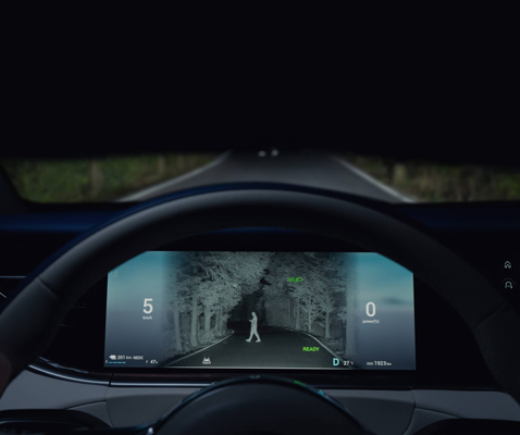 Araca yaklaşırken, delici kanat ışık grubu otomatik olarak açılır. Gizli kapı kolu açılır/şasi indirilir. Entegre üçlü ekran kaldırılır/ortam ışığı açılır. FACE ID, sürücüyü/koltuğu tanır ve dikiz aynası buna göre ayarlanır.